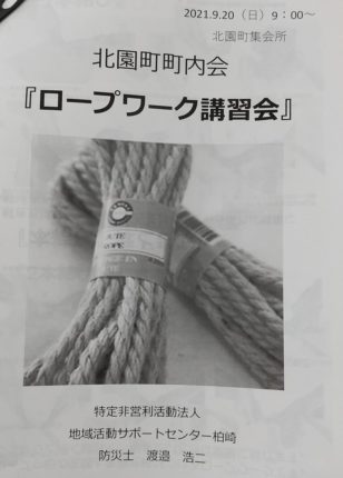 20 9月 町内防災訓練 ロープワーク 今日は町内の防災訓練の一環として、地域活動サポートセンター柏崎の渡辺さんを講師として、「ロープワーク」研修を行いました。町内の防災訓練では、自主防災会として消火訓練や災害時の活動、備品の扱い方、避難所経営訓練、あるいは知 […]
