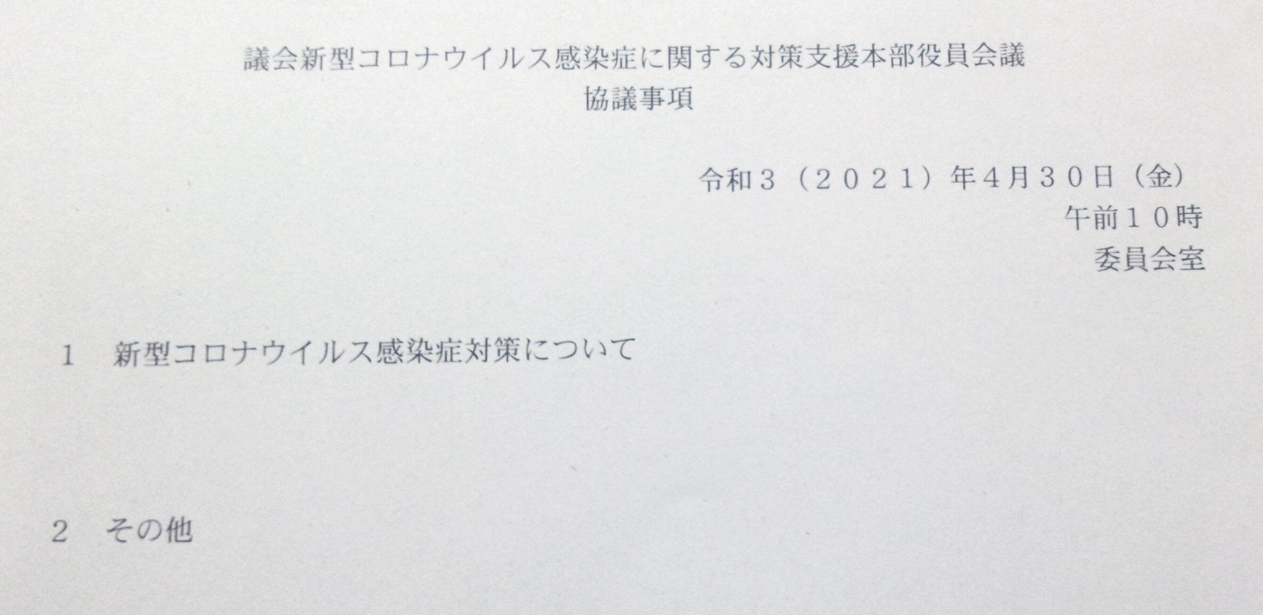 市として「対策本部」を立ち上げ、新型コロナウイルス感染症の対する感染防止策や経済対策などを検討していますが、議会としては市の対策本部を「支援」するという立ち位置で「対策支援本部」を立ち上げています。これは、議員個人個人が各担当部署と直接交渉したりすることによる対策本部の妨げにならないようにするためでもあります。議員個人は市民からの情報を収集し、この支援本部会議で報告することにより、議会としての共有化を図り、市の当局に申し入れをしていくことになります。