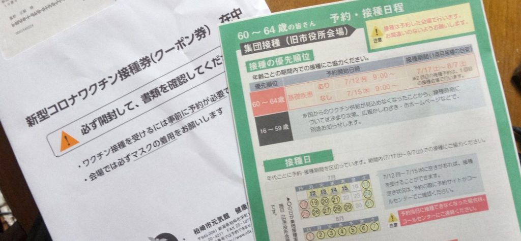 今日、私のところにワクチン接種券が届きました。この用紙によると60歳から64歳までの方への案内です。でも厳密にいうと私はまだ60歳になっていません。今年度中に60歳になりますが。そういう方にも届くのですねきっと。それはともかく、上にも書きましたが、このワクチン接種についてはいろいろな意見があることは見聞きしています。それを承知の上で私は接種します。変な裏読みはしませんし、ワクチンによるデメリットも理解した上での判断です。既往症はありませんので15日以降に予約をするようになっています。