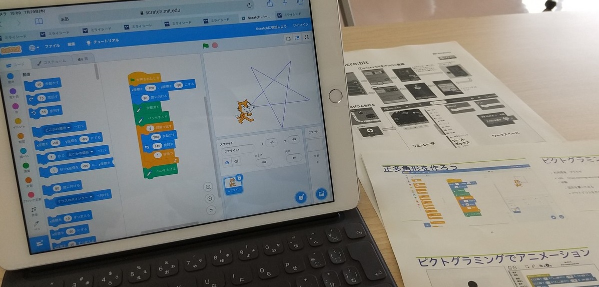 今日は柏崎市教育センターが主催する研修、「小学校プログラミング教育」講座に参加させていただきました。プロギラ民具教育はすでに小学校現場では昨年度から実施されており、しかも柏崎市では小学3年生以上には一人1台のタブレットが配布されている現状があります。