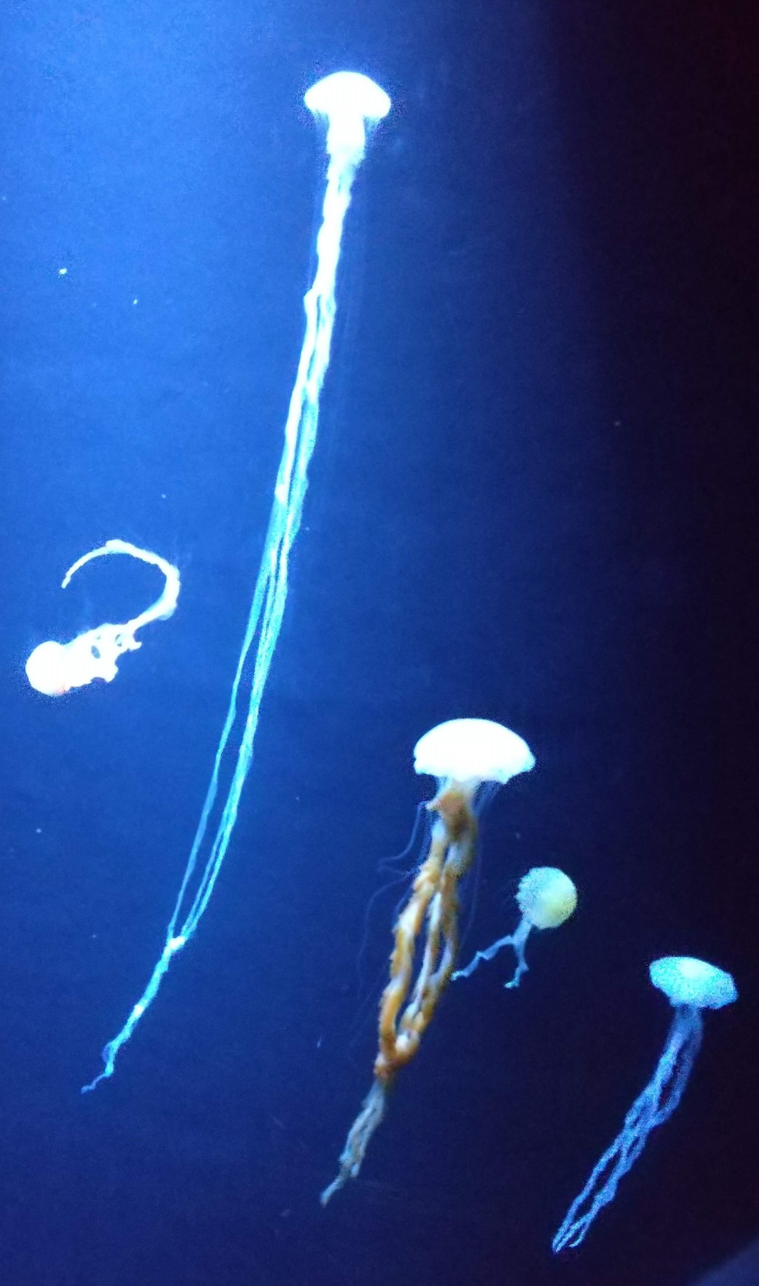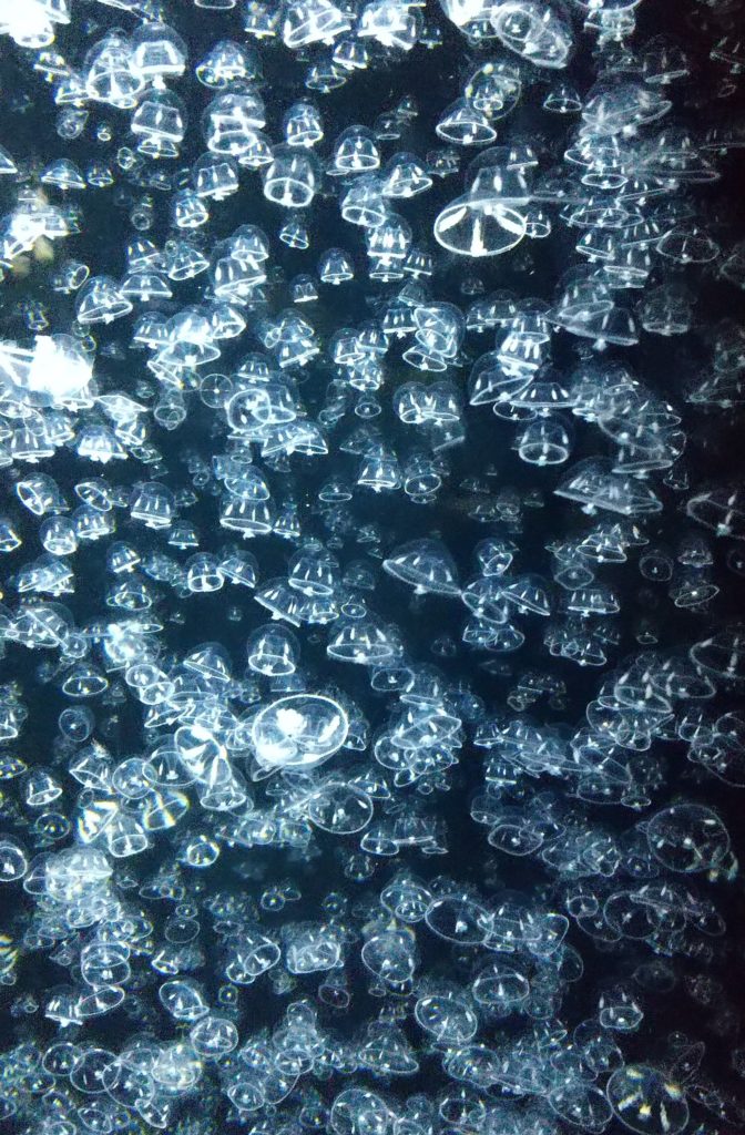 私にとってはなんといっても加茂水族館でした。前々から行ってみたいところの一つだったのです。海水浴をしていると、お盆過ぎにはクラゲが発生し、泳ぐどころではなくなるという印象があるのですが、実際に近くでクラゲの動きを観察することなどありませんでした。クラゲとひとくくりにしてしまいますが、当然たくさんの種類があります。1cmくらいの小さなものから触手だけで数メートルにもなるもの、光を放つもの、まるまっこいものからクラゲっぽくない細長いものまで様々でした。大きな水槽にびっしり入っている展示は壮観なものでした。そして、クラゲもそうなのですが、クラゲを見た後に見つけたものがありました。「ケサ(セ)ランパサラン」です。ものすごく興味深い生き物(?)です。私は小学生の頃から、ケセランパサランを知っていて、そうではないかと思われるものを捕獲もしました。しかしそれはこんなにふさふさした毛でおおわれているものではなく、植物の種のようでしたから、きっと別物ですね。今日一でテンションが上がりました。