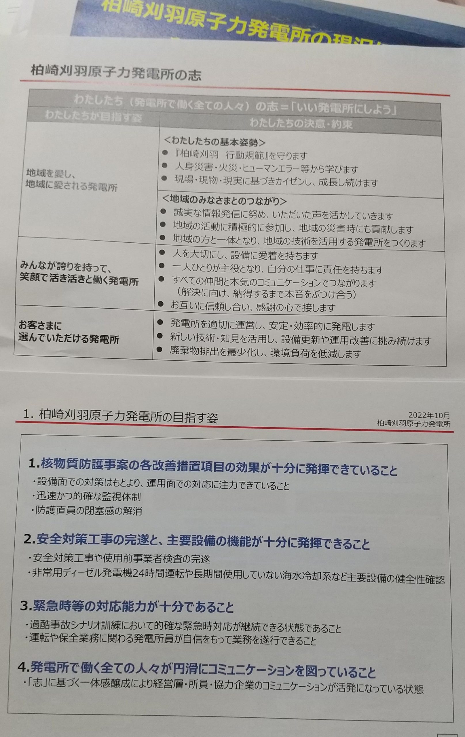 今日は市議会の原発特別委員会としての視察で柏崎刈羽原子力発電所に行きました。柏崎市議会としても柏刈原発の視察は数年ぶりでした。その間、詳細は記しませんが、様々な不祥事があったり、配管等の不適切な設置、その他柏崎市民に対しても信頼を裏切ることにつながりかねない事象が続いていました。工事関係についてはそれまでの不適切工事部分の修正は終わることにないくらいなものでした。また、ヒューマンエラーとしての人が原因の不祥事も重なり、いつになっても市民からの信頼をかちとれなく、いつになっても再稼働に進むことができない状況が続いていました。「した」という過去形ではなく、「す」という現在形が正しいかもしれません。