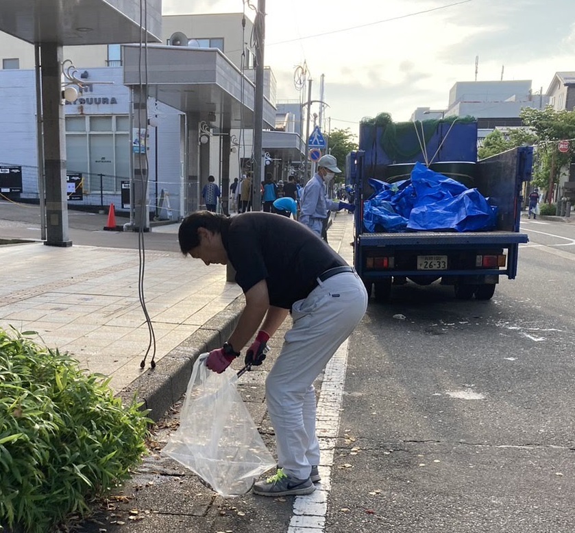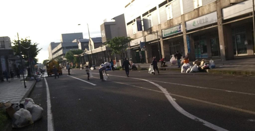 昨日までのえんま市。えんま市の翌日の朝は「えんま市清掃」を第一中学校の生徒と一緒に行っています。この第一中学校のえんま市清掃は34回目という話です。私が中学生だったときにはなかったイベントです。校区で行われたえんま市の片づけを生徒会が主導して中学生が行うというのはとてもいい活動だと思います。今日は各部活動単位での清掃活動を行っていました。市長も参加していました。