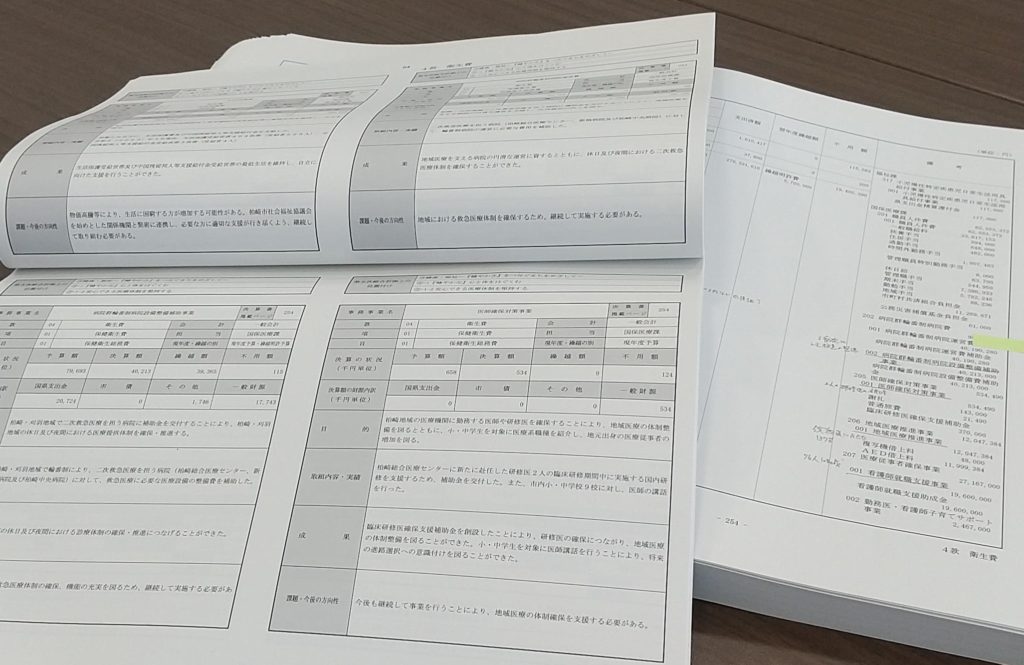今日から所属する文教厚生分科会による令和4年度決算の審査が始まりました。昨日までにすでに総務分科会と産業建設分科会は審査を終えています。この文教厚生分科会の所管は福祉保健部、子ども未来部、教育委員会ですので、それらの部署が関わっている一般会計決算と特別会計としての国民保険特別会計、高齢者医療特別会計、介護保険特別会計の審査をします。その中で、今日は福祉保健部関係の決算審査をしました。以下は一般会計決算における主な質疑内容です。
