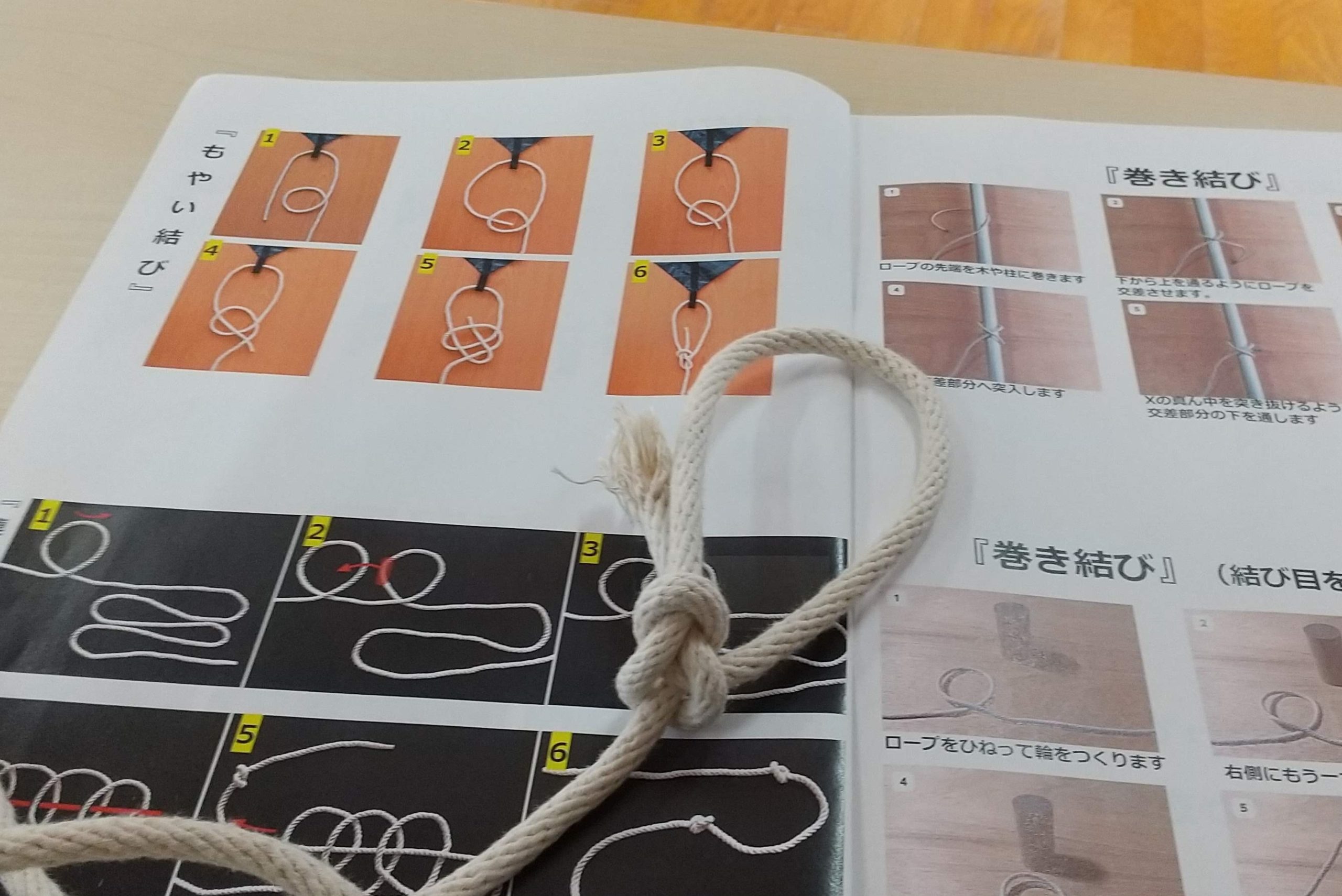 午前中には町内防災訓練として「ロープワーク」の研修を行いました。このロープワークはただ「紐を縛る」というのではなく、「命を守る」ことにつながっているものだということを改めて認識しました。それもできるだけ簡単に、そしてほどきやすい縛り方が大切だということも理解できました。とはいうものの、私にとってこのロープワークは今日が初めてではなく、以前も町内防災会で同じことを学んでいるのですが、正直なところ身に付いてはいませんでした。靴の紐を結んでもいつも立て結びになってしまいますし、「もやい結び」って聞いたことあるけど、という状態に戻っていました。これを機に、生活の中で意識して結んでいきたいと思いました。