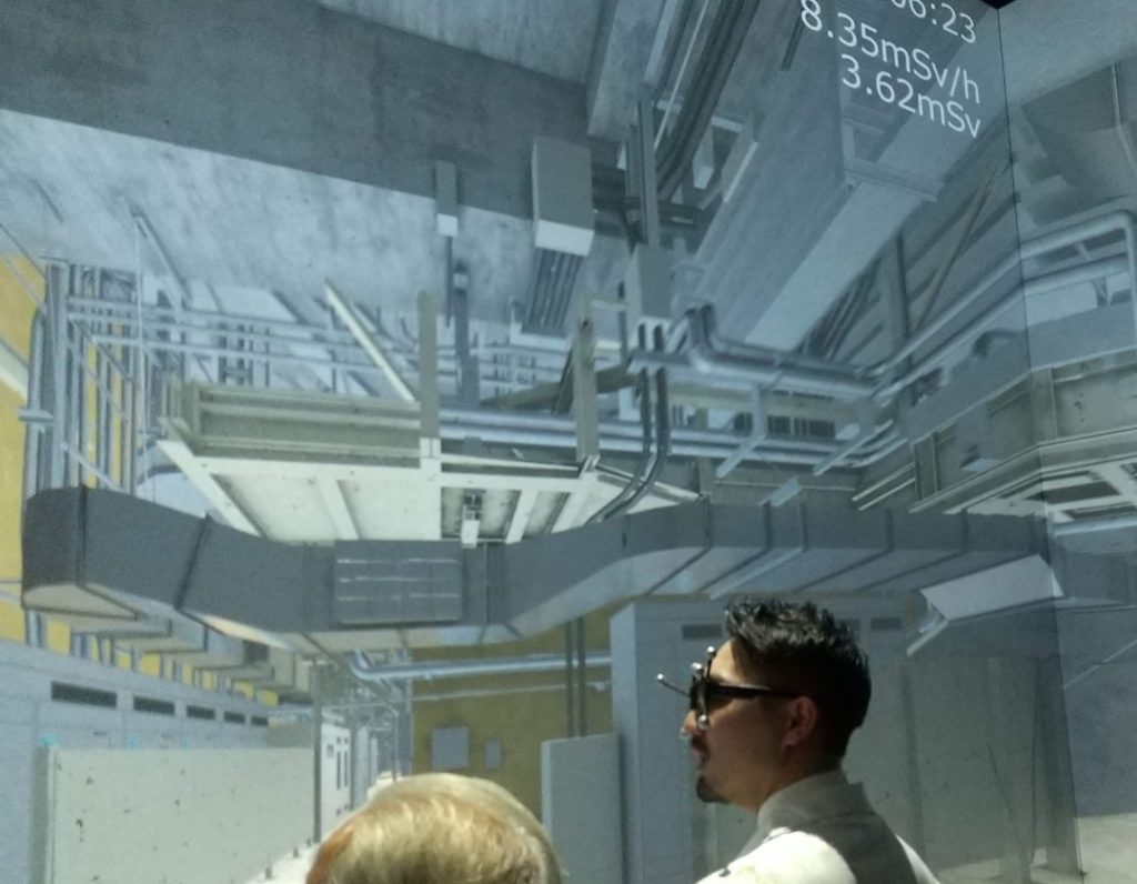 福島第一原発の処理を段階を経て、どのように進めていっているのかを視察できた。遠隔操作で細かな作業ができるロボット、障害物を乗り越え、あるいは水中でも動かせる機器の開発現場を目の当たりにして、ここはある意味日本の最新技術が結集しているところであることが感じられた。また、VRで原子炉建屋内部の様子を映し出し(下の写真、スタッフの男性がVRを案内している様子)、それを作業に生かすシステムは驚きでもあった。これらを使って実際にはどこまで処理作業を進んでいるのか、事故から12年が経った今の現実がどうなのかを明日視察できると思う。直接人間の手が触れなくても作業ができる機器や映像を映せるカメラ、VRの設備など、日進月歩の様子がよく分かった。あとはこの技術が現場でどれだけ効果を上げているのかを確認したいと思う。