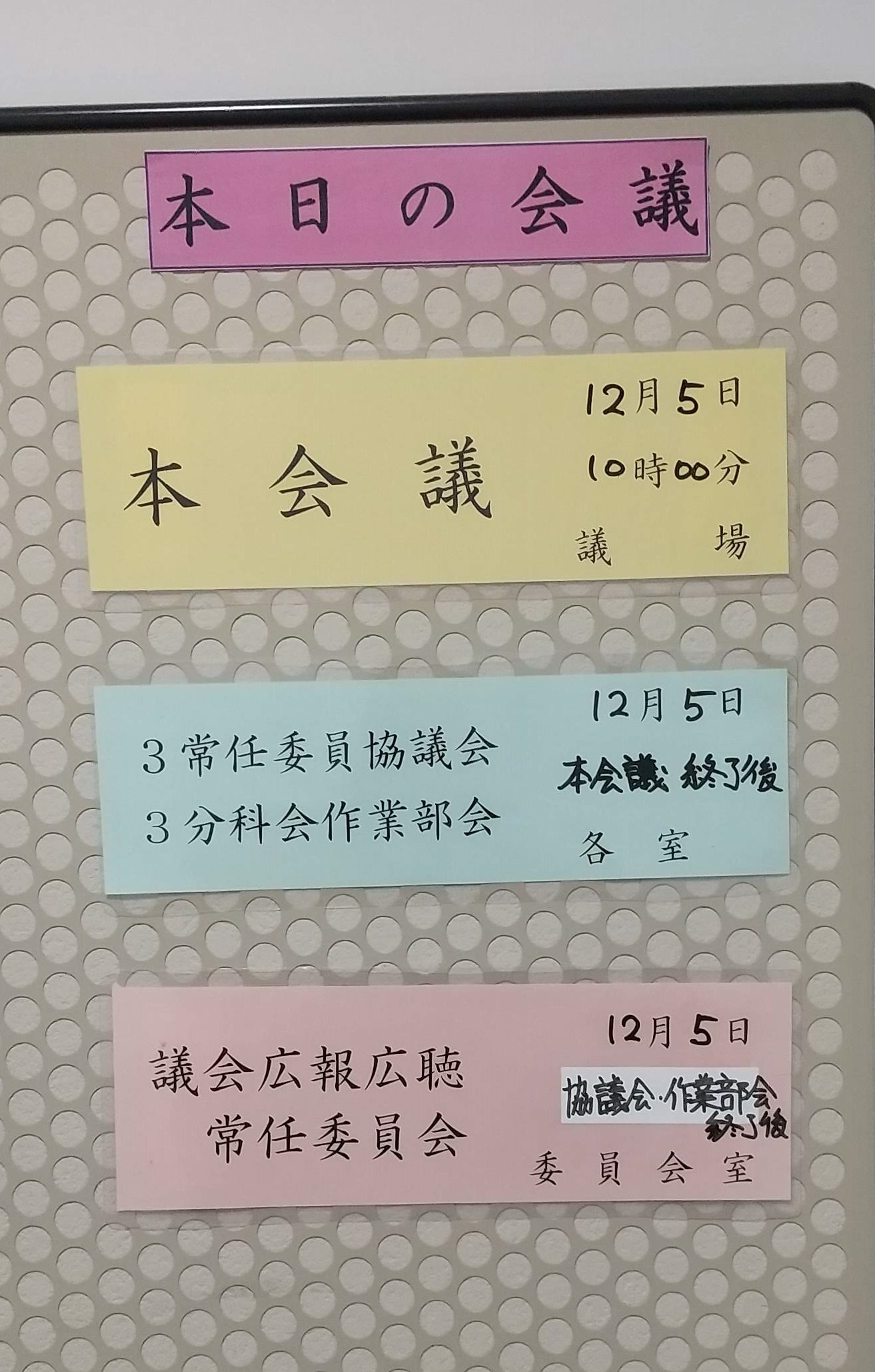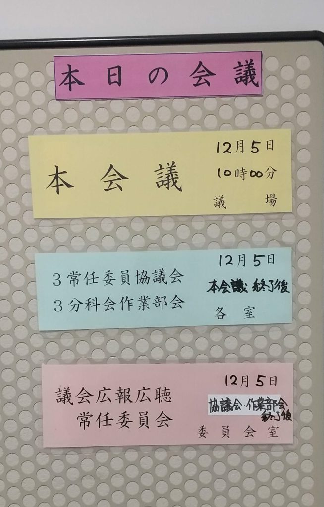 今日から定例会議が始まりました。今回上程された議案は主に補正予算関係です。それに水道料金の改訂に関しての条例改正の提案もありました。詳細の審議は13日からの各常任委員会や分科会で交わされることになります。また、各常任委員会協議会でも様々な報告事項もあります。議案や計画の上程ということではなく、当局が今時点で進めていることなどについての報告です。総務常任委員会では、「ごみ処理場建設方針」「令和6年度当初予算編成状況」「庁内の組織機構」などについて、文教厚生常任委員会では、「重層的支援体制整備」「第7期障害福祉計画」「地域包括ケア計画」などについて、産業建設常任委員会では、「風の丘米山整備基本計画」などについて報告があります。報告ですから審査を行うということではありませんが、質疑を交わしながら、市の考え方を確認していくことになります。