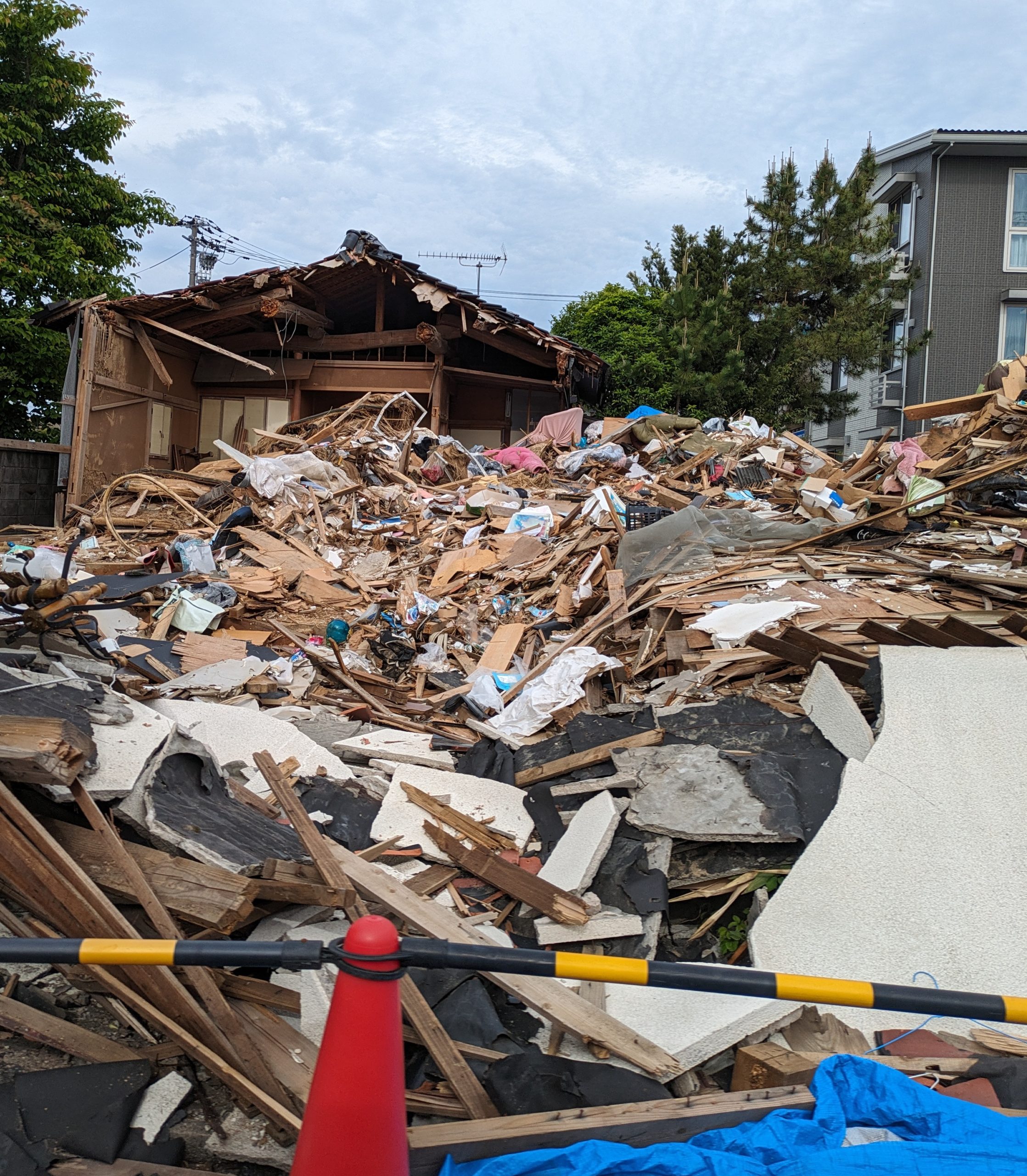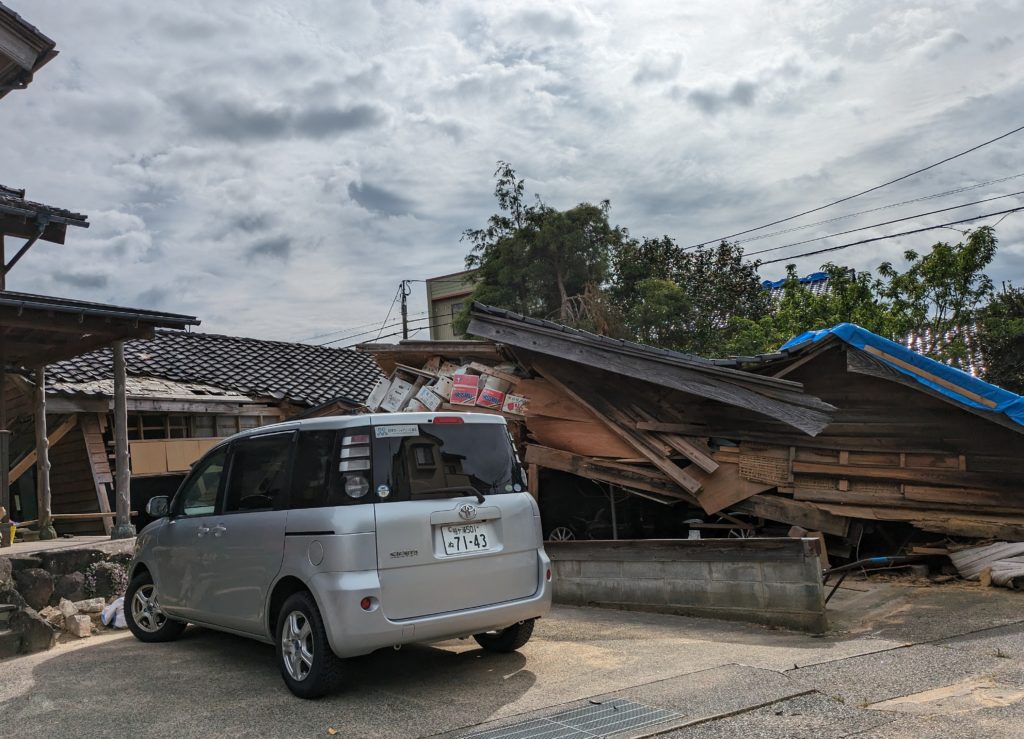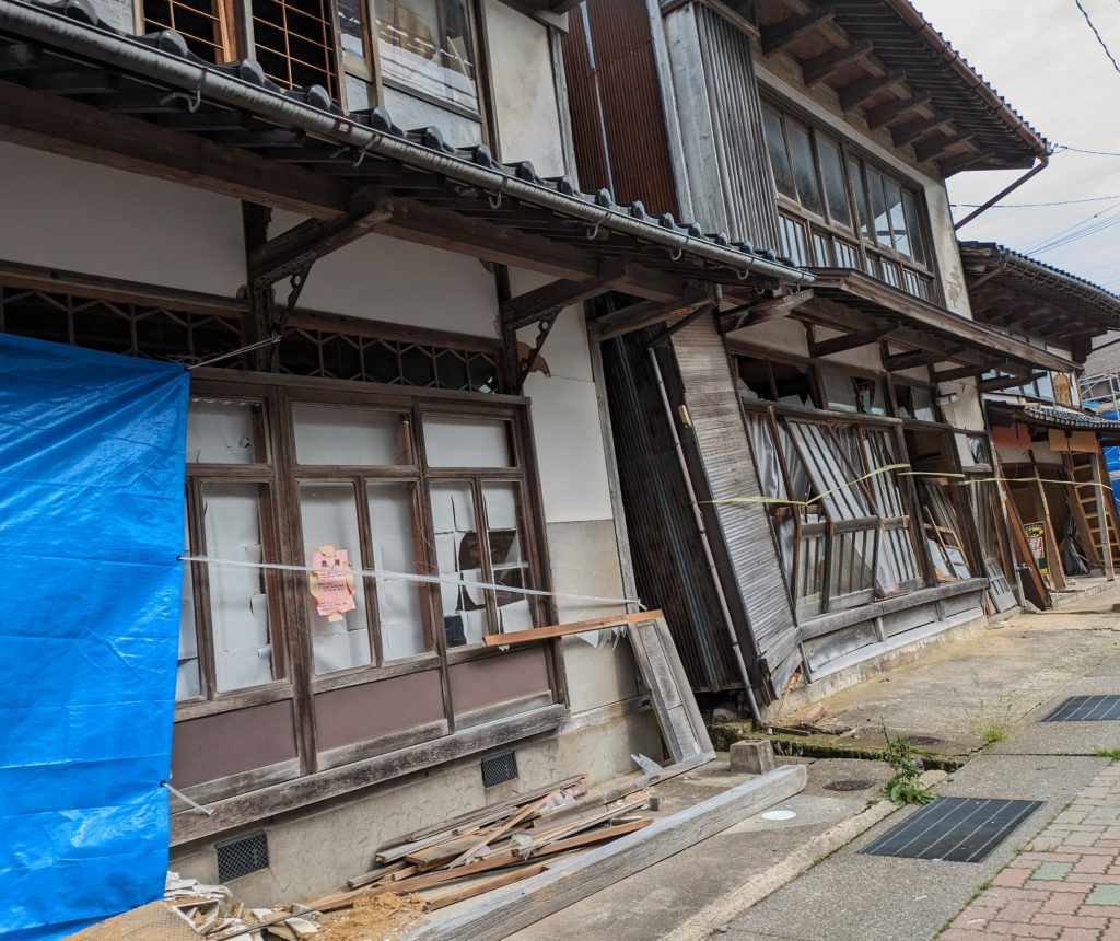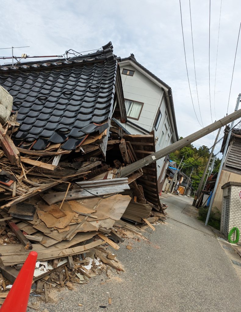 1月1日の能登半島地震の状況を確認するために七尾市を訪れました。七尾市で今回の能登半島地震発生を受けて立ち上げた民間のボランティア団体「oneチーム七尾」の中山直史さん、西川英伸さんからお話を伺い、現地を案内していただきました。率直な印象として、4か月半経過しているのにまだこの状況なのか、というものでした。