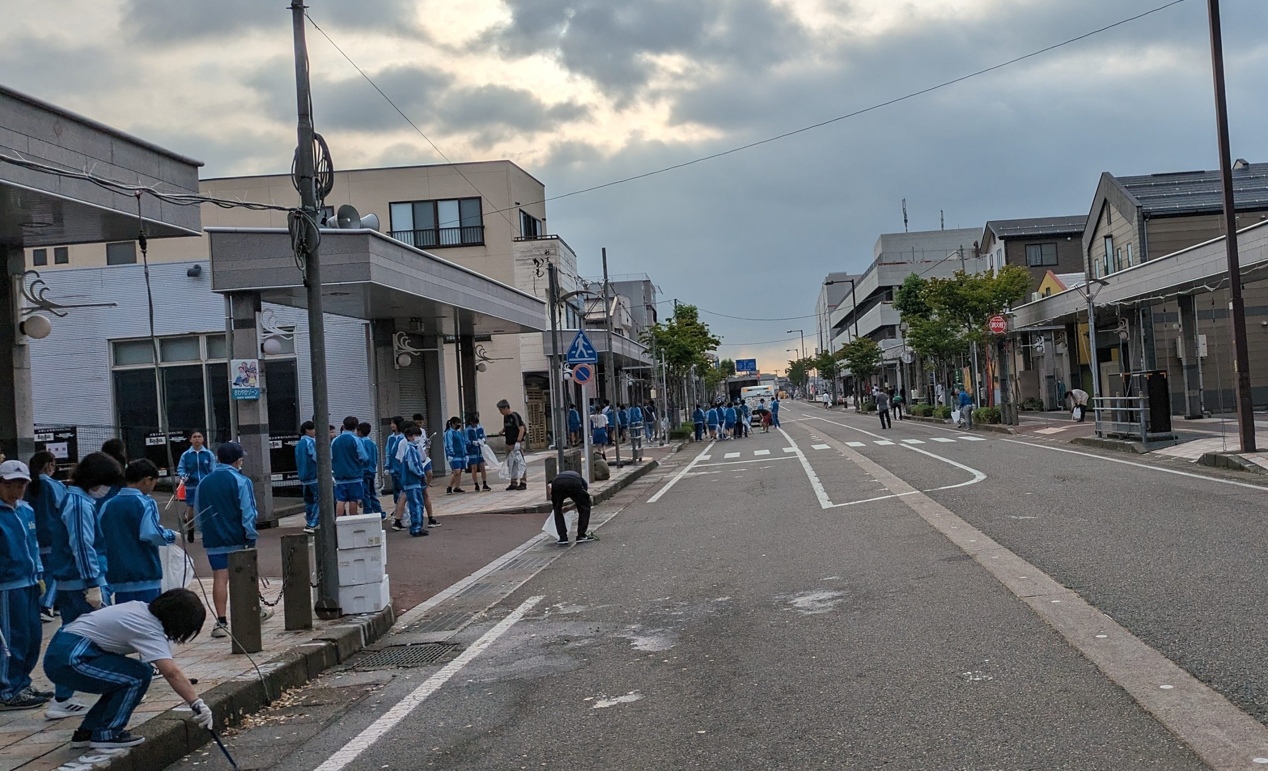毎年このえんま市の翌日の朝、校区の第一中学校の生徒会が主催しての「えんま市清掃」を行っています。今年は中学校の地区大会と重なったこともあり、全校生徒が参加したものではありませんでしたが、地区大会参加者以外の生徒のほとんどが参加したようです。東京電力さんやダムズさんなど地元企業も一緒にゴミ拾いの活動を行っていました。私も毎年参加しているのですが、今年は例年になくたばこの吸い殻がたくさん落ちていました。う~ん、少し残念な気持ちになりました。